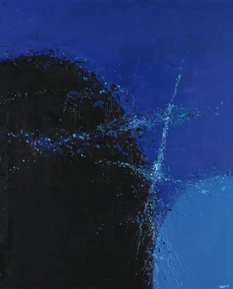 CAMILLO FRANCIA Casale Monferrato (Al) 1955 Delta-gamma, 2001 olio su tela cm. 100x80, firma in basso a destra, titolo, firma, anno e archivio numero 069 F al retro, dichiarazione d'autenticità e archivio dell'artista su foto, pubblicato sui cataloghi della mostra "Il pensiero tra segno e colore" tenutasi presso il Palazzo del Senato di Milano nel marzo-aprile 2001 e presso il Complesso ex Baronino di Casale Monferrato nel maggio-giugno 2001 alla pagina 49, pubblicato su "Camillo Francia, Catalogo Generale delle opere" volume 1, pagina 17.