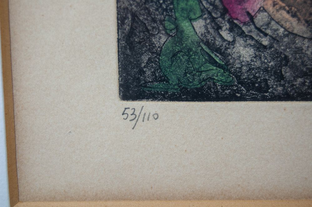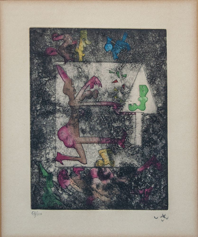 ROBERTO SEBASTIÁN MATTA (Santiago del Cile 1911 - Civitavecchia 2002) "Senza titolo". Litografia a colori su carta. Lastra: cm 23,6x18. Opera firmata in basso a destra Matta. Reca numeri di tiratura in basso a sinsistra 53/110 . Dalla Cartella dei Surrealisti, Mazzotta, 1975. Opera corredata da cartella.