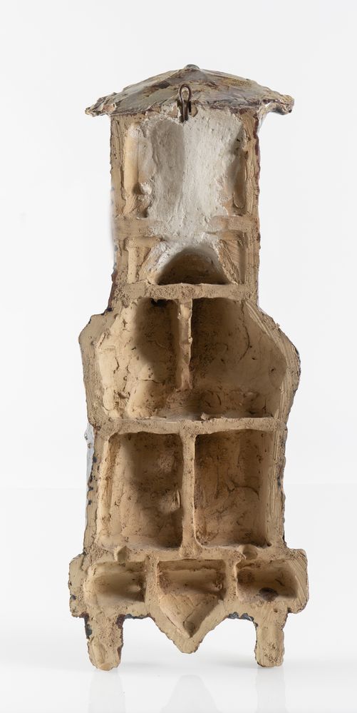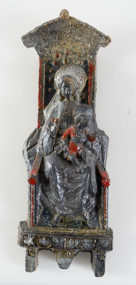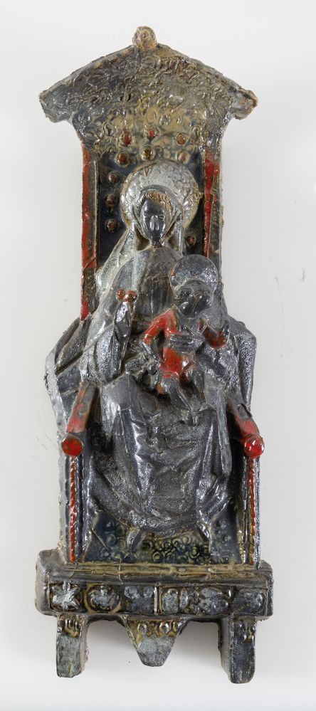 ANGELO BIANCINI (Castelbolognese 1911 - 1988), attr. "Madonna con bambino". Scultura in ceramica smaltata. Cm 67x27x10. (difetti)
