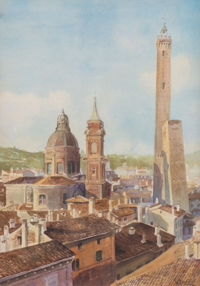 Lotto 104 | LUIGI BUSI (Bologna 1837 – 1884) "Veduta bolognese". Acquerello su carta. Cm 44,5x31,3....