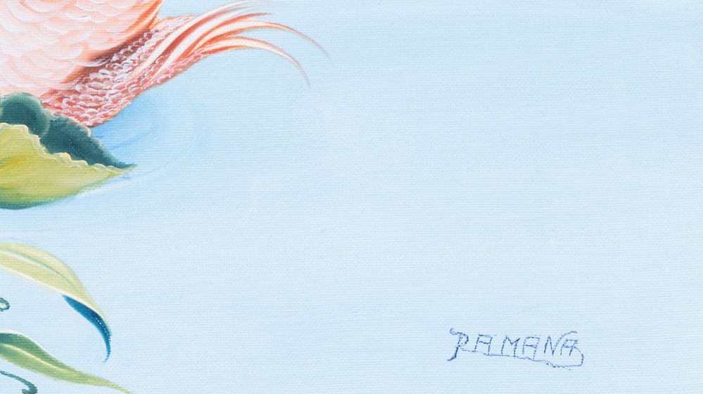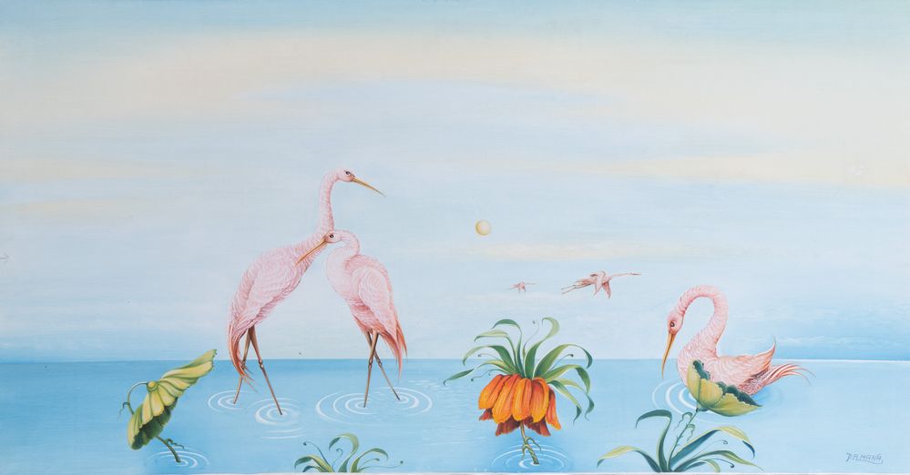 RAMANA (XX secolo) "Senza titolo". Olio su tela. Cm 70x135. Opera firmata in basso a destra Ramana.
