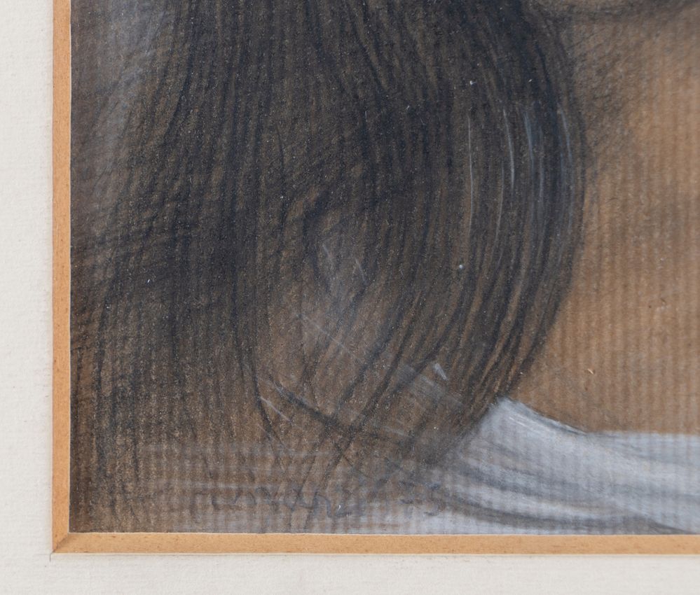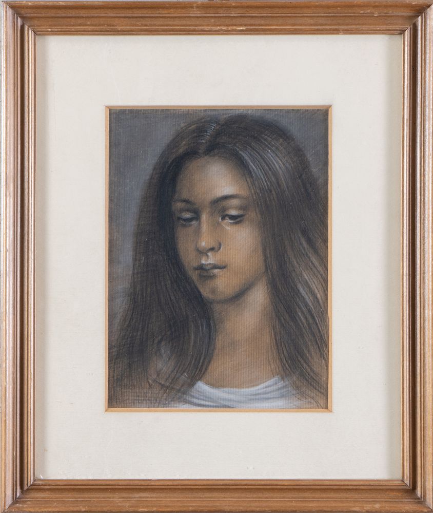 NINO TIRINNANZI (Greve in Chianti 1923 – 2002) "Volto di fanciulla", 1975. Tecnica mista su carta. Cm 25x18,5. Opera firmata e datata in basso a sinistra Tirinnanzi '75.