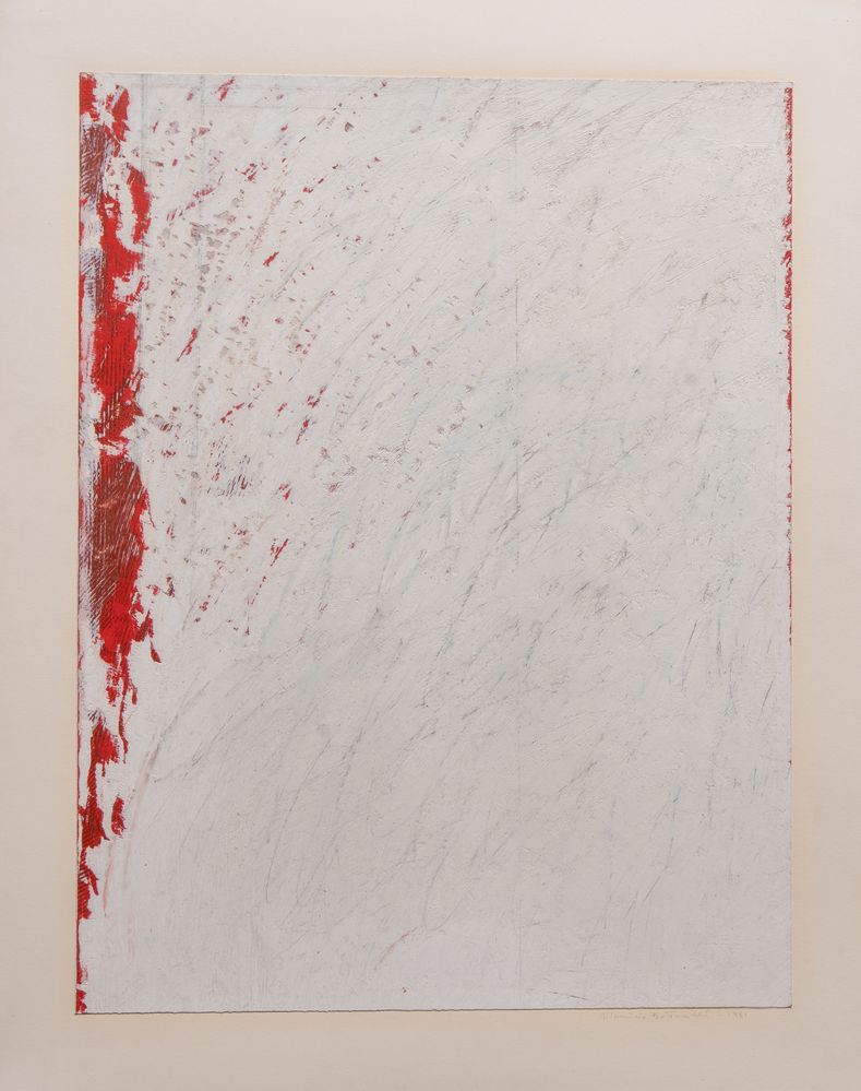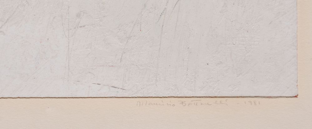 MAURIZIO BOTTARELLI (Fidenza 1943) "Composizione", 1981. Acrilico su cartoncino. Cm 53,5x41. Opera firmata e datata in basso a destra Maurzio Bottarelli 1981. Al retro reca etichetta della Galleria San Luca, Bologna.