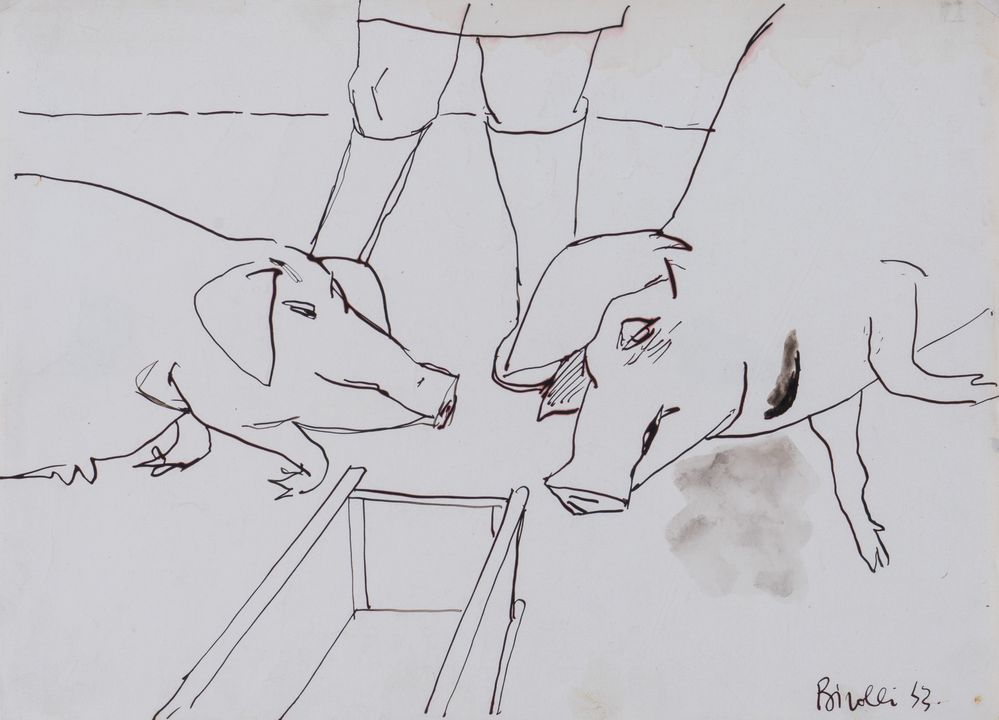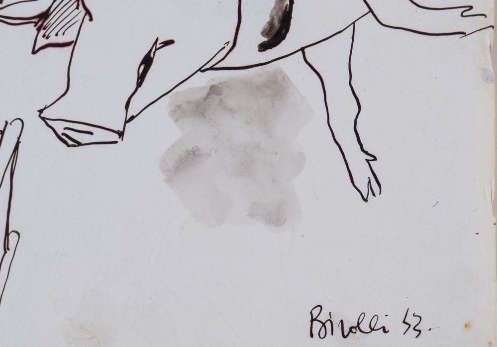 RENATO BIROLLI (Verona 1905 - Milano 1959) "Senza titolo", 1943. China su carta. Cm 23x32. Opera firmata e datata in basso a destra Birolli '43. Al retro reca timbro della Galleria dell'Annunciata, Milano. Provenienza: Galleria dell'Annunciata, Milano.