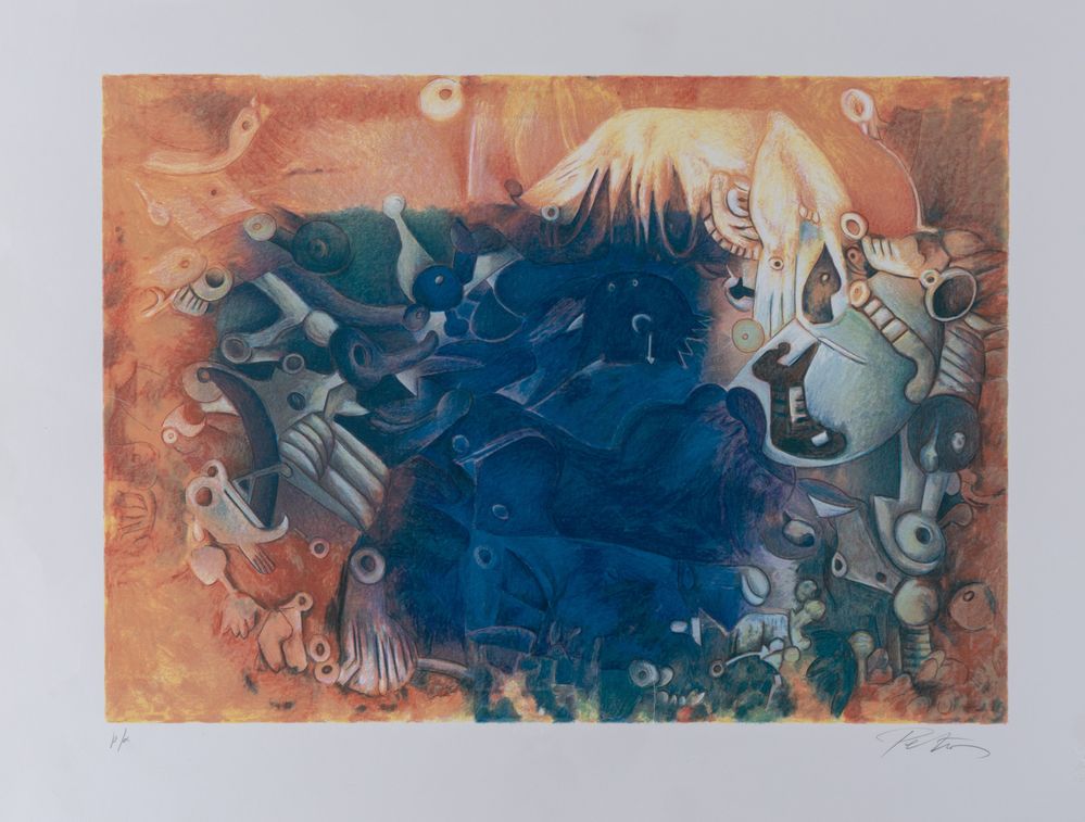 PETROS PAPAVASSILIOU (Atene 1928 – Milano 2014) "Senza titolo". Litografia a colori su carta. Cm 60x80. Opera firmata in basso a destra Petros. Reca numeri di tiratura in basso a destra P.A.
