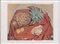 Pittore anonimo del XX secolo. "Natura morta con ananas". Litografia a colori...