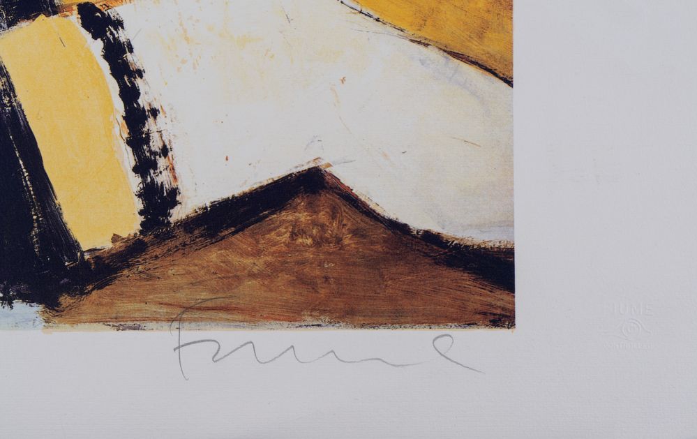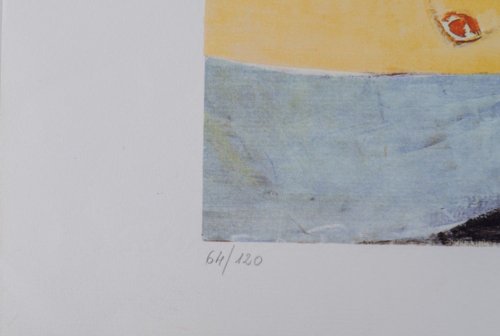 SALVATORE FIUME (Comiso 1915 - Milano 1997) "Christus vincit", 1986. Litografia a colori su carta. Foglio: cm 59x80. Opera firmata in basso a destra Fiume. Reca numeri di tiratura in basso a sinistra 64/120. Reca timbro a secco Fiume Controlled. In lastra titolo e data stampati Christus vincit, 1986.