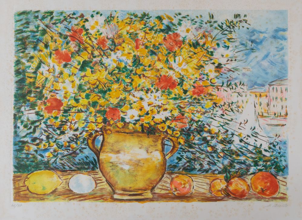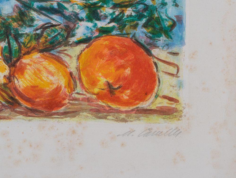 MICHELE CASCELLA (Ortona 1892 - Milano 1989) "Natura morta". Litografia a colori su carta. Cm 60x80. Opera firmata in basso a destra M. Cascella. Reca numeri di tiratura in basso a destra 36/99. (difetti)