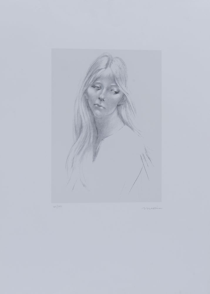 FRANCESCO MESSINA (Linguaglossa 1900 – Milano 1995) “Ritratto femminile”. Litografia a colori su carta. Foglio: cm 70x50; lastra: cm 35,2x25,4. Opera firmata in basso a destra Messina. Reca numeri di tiratura in basso a sinistra 32/125.