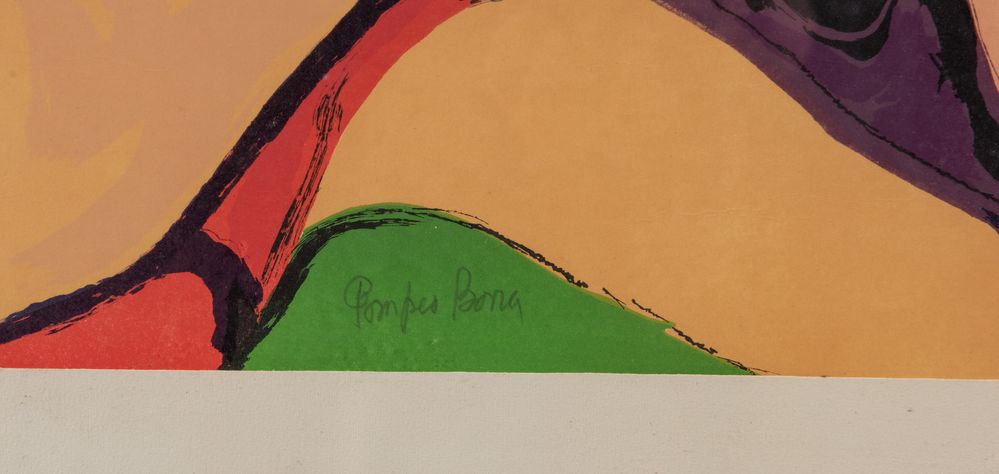POMPEO BORRA "Le amiche". Litografia a colori su carta. Foglio: cm 69,5x49,5. Opera firmata in basso al centro Pompeo Borra. Reca di numeri di tiratura in basso a sinistra 88/148.