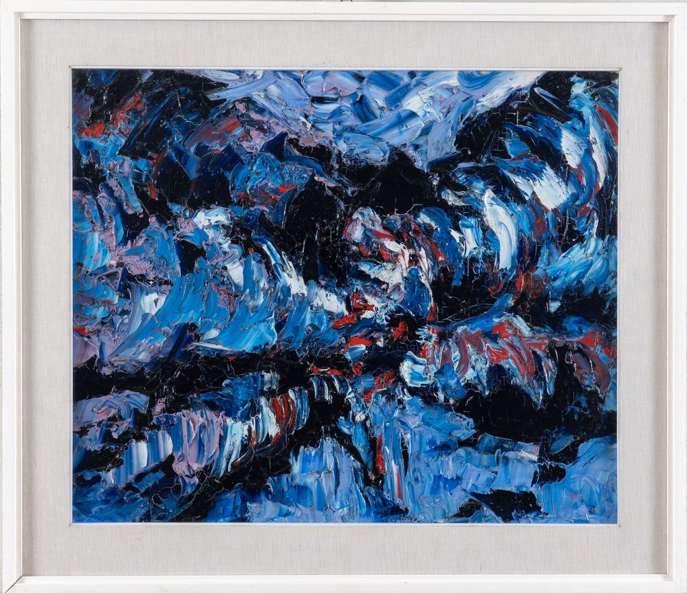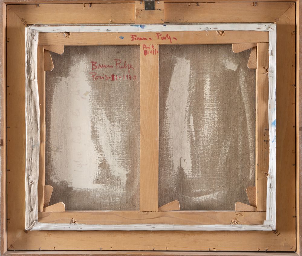 BRUNO PULGA (Bologna 1922 - 1993). "Senza titolo", 1970. Olio su tela. Cm 50x61. Al retro opera firmata e datata Bruno Pulga, Paris 1970.