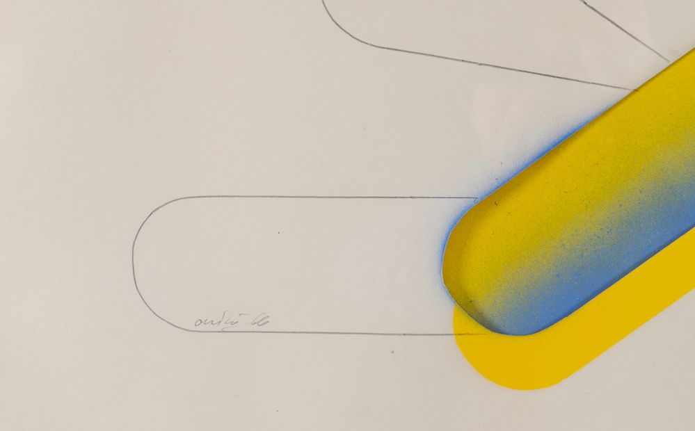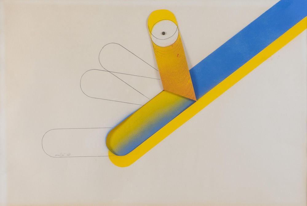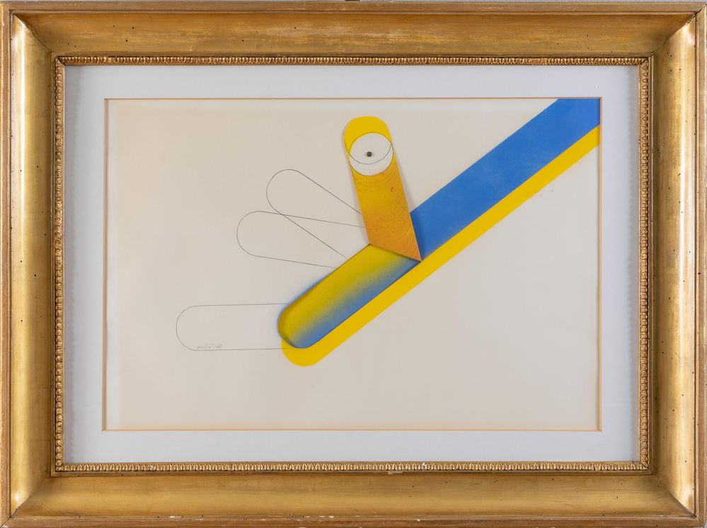 RODOLFO ARICÒ (Milano 1930 - 2002) "Senza titolo", 1966. Tecnica mista e collage su carta. Cm 56,5x80,5. Opera firmata e datata al centro Aricò 66.