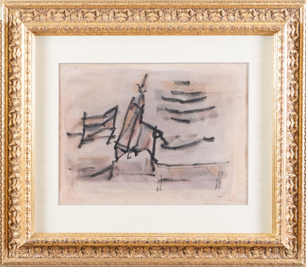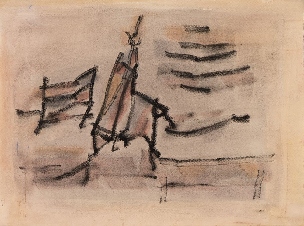 SERGIO ROMITI (Bologna 1928 - Bologna 2000) "Composizione", anni '50. Tempera su carta. Cm 41x55.