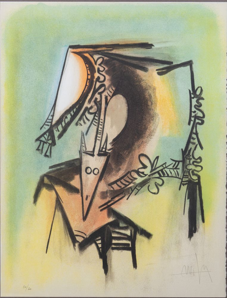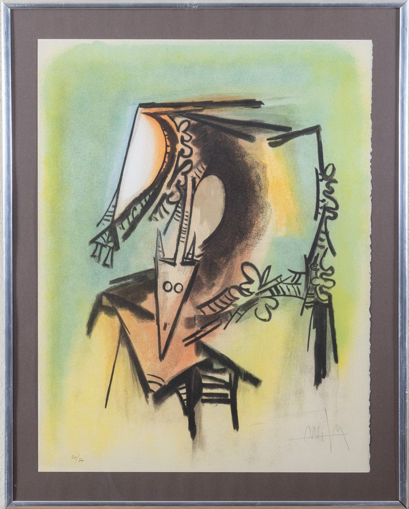 WILFRED LAM (Sagua la Grande 1902 - Parigi 1982) "Les loa Petro enfantent dans la danse", 1973. Litografia a colori su carta. Cm 65x50. Opera firmata in basso a destra WLam. Reca numeri di tiratura in basso a sinistra 50/50.