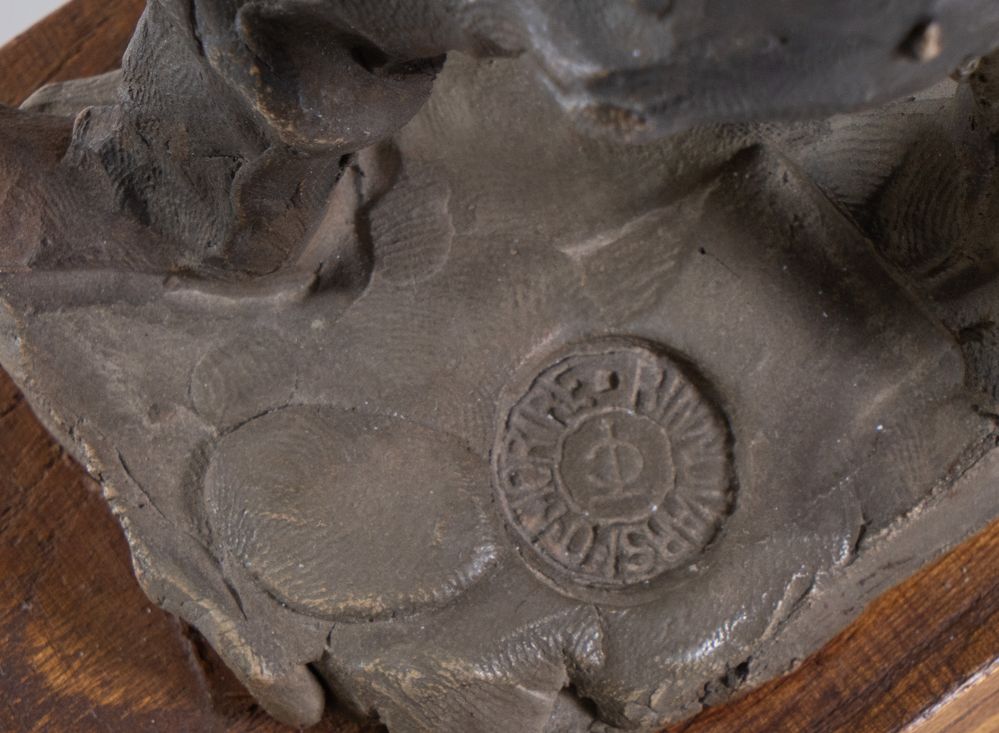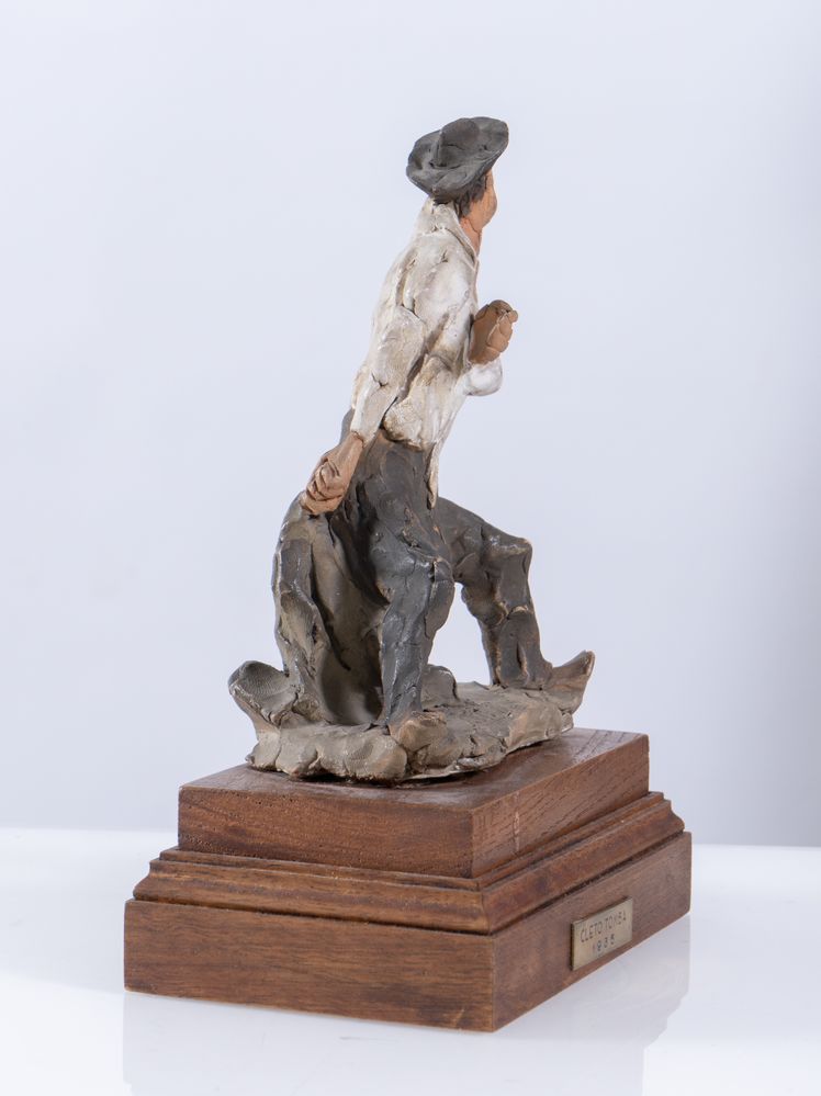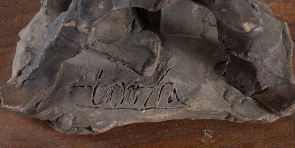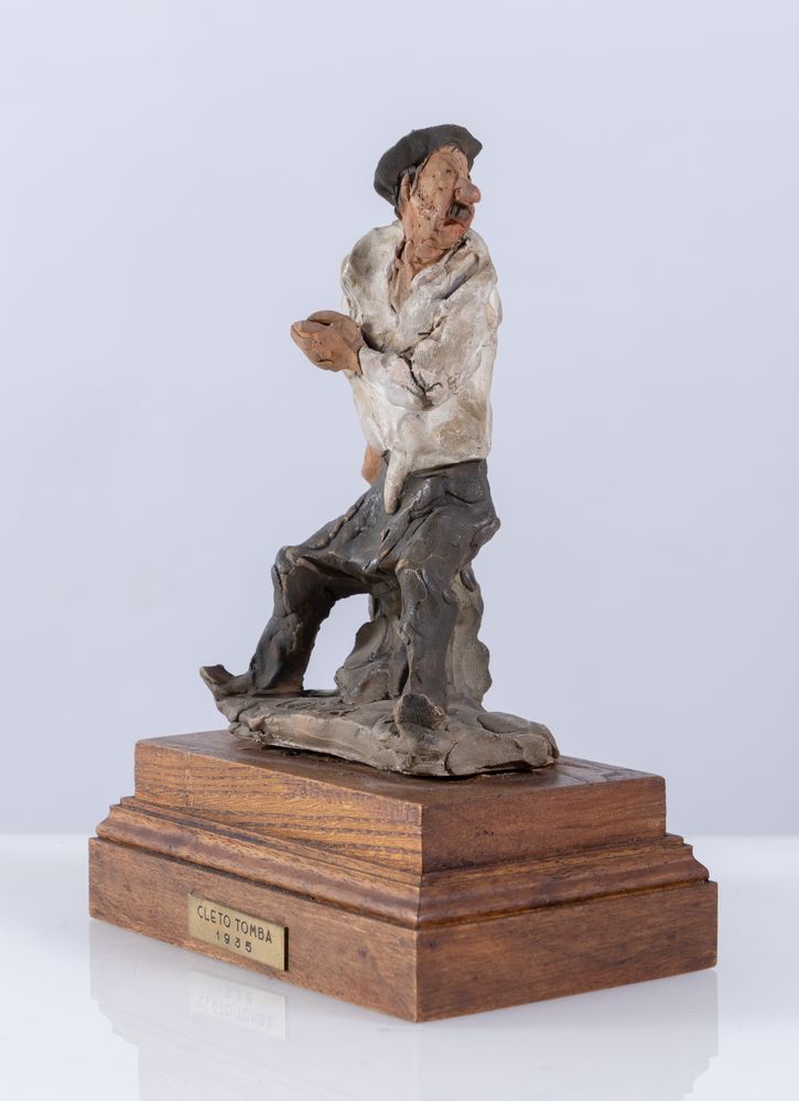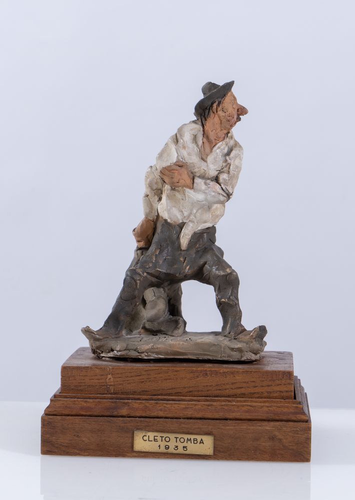 CLETO TOMBA (Castel San Pietro Terme 1898 - Bologna 1987) "Figura", 1935. Scultura in terracotta policroma. Cm 15,3x6,5x10. Opera firmata alla base Tomba. Alla base reca timbro CT.