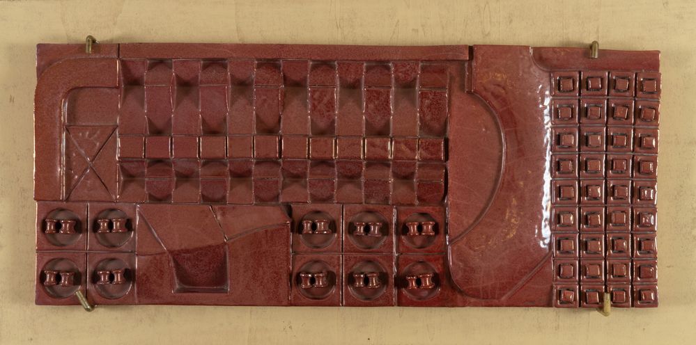 CARLO ZAULI (Faeza 1926 - 2002) "Struttura geometrica", primi anni '60. Scultura in ceramica smaltata. Cm 29,5x70. Opera firmata Zauli. Opera archiviata presso l'Archivio Carlo Zauli.
