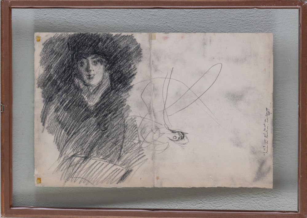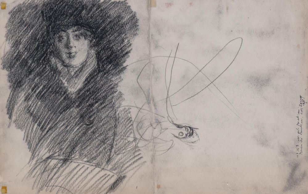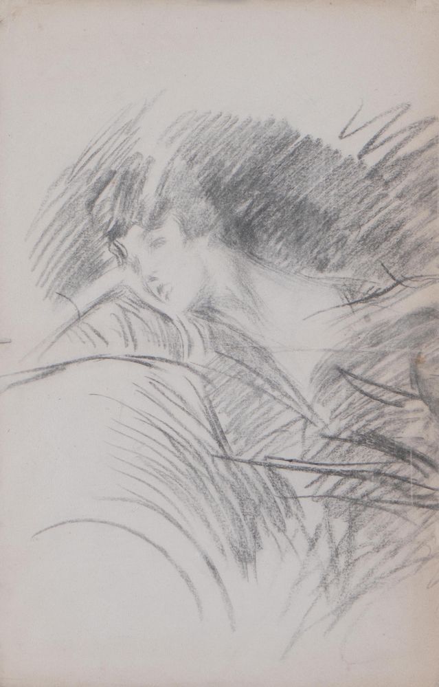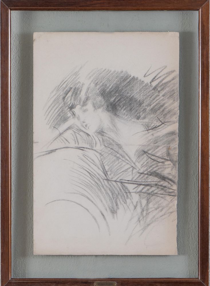GIOVANNI BOLDINI (Ferrara 1842 – Parigi 1931) Carboncino su carta. Cm 50x32,5. Opera rectoversa: al verso "Busto di ragazza e figura femminile n. 2771" e al recto "Signora sul divano n. 2770". Al retro reca scritta in basso a sinistra.
