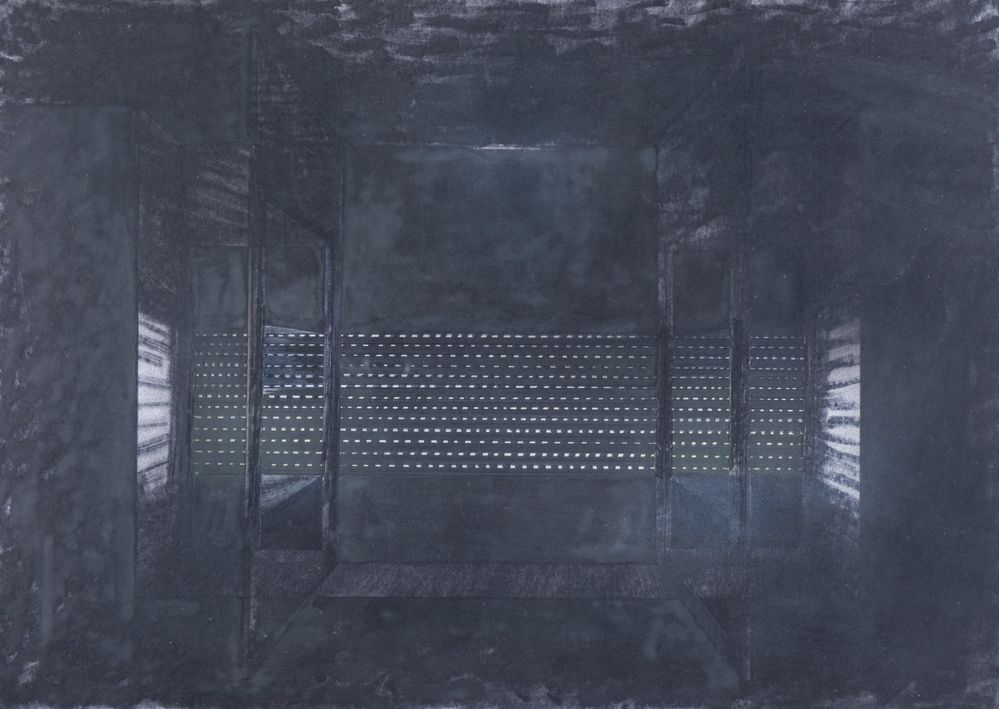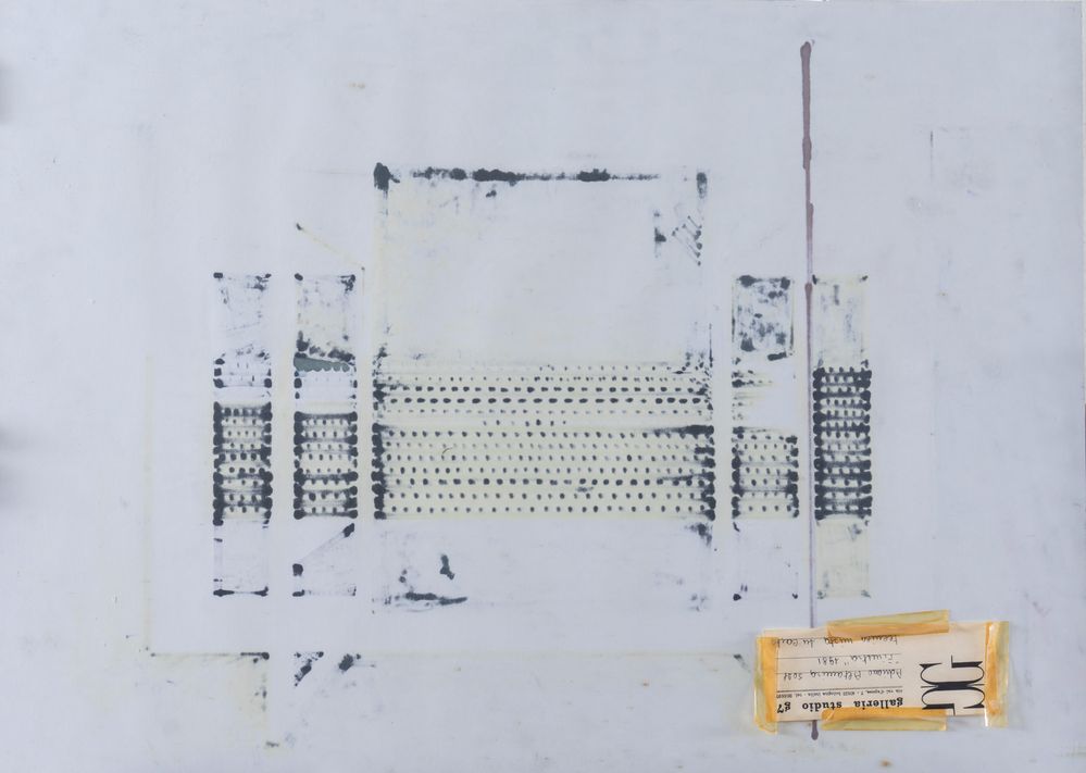 ADRIANO ALTAMIRA (Milano 1947) "Finestra", 1981. Tecnica mista su carta. Cm 50x70. Al retro reca etichetta Galleria Studio G7.