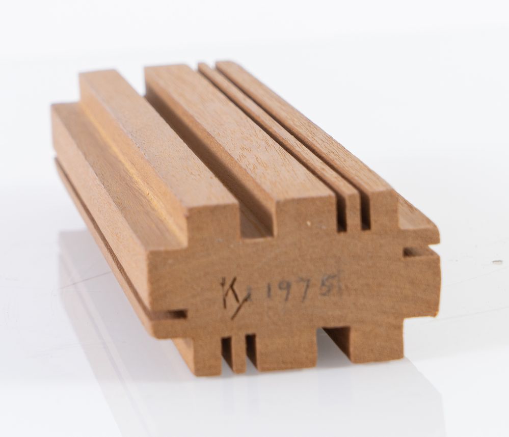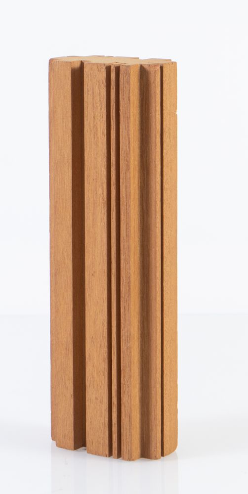 GIOVANNI KOROMPAY (Venezia 1904 - Rovereto 1988) "Verticalismi", 1975. Scultura in legno. Cm 24x8x4,6. Sotto la base opera siglata e datata K 1975.