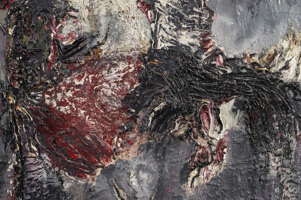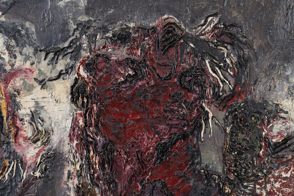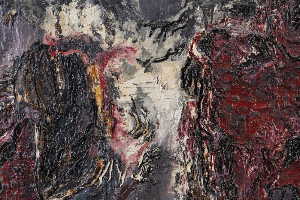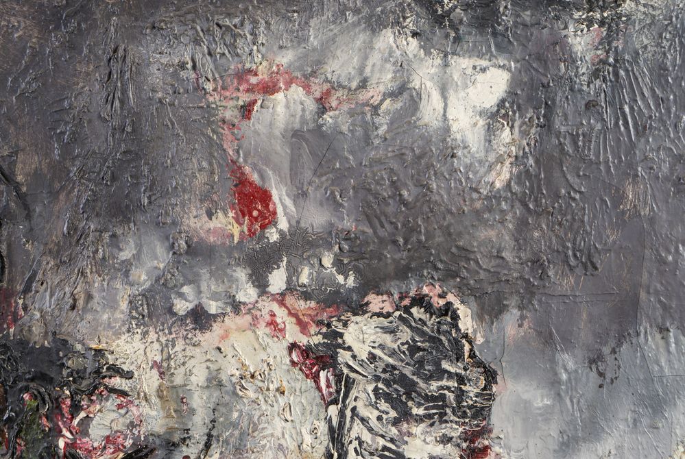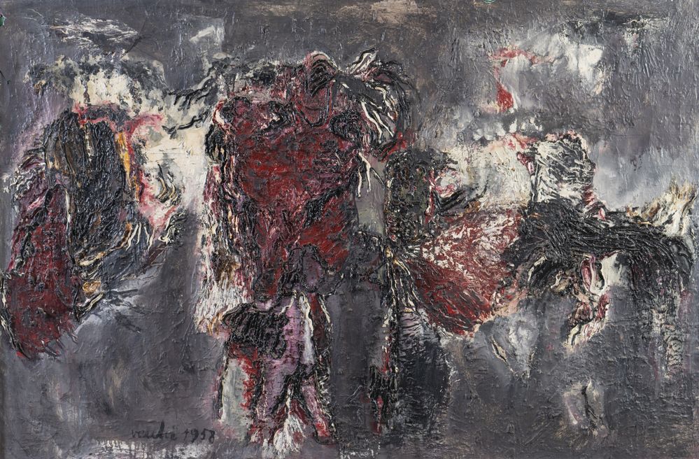 SERGIO VACCHI (Castenaso 1925 - Siena 2016) "Il vento di sera", 1958. Olio materico su tela. Cm 98x148. Opera firmata e datata in basso a sinistra Vacchi 1958. Al retro opera intitolata, datata e firmata Il vento di sera, Vacchi, 1956-1957-1958. Al retro reca etichetta della Galleria d'arte San Luca, Bologna, con timbro. Al retro reca timbro di mostra.
