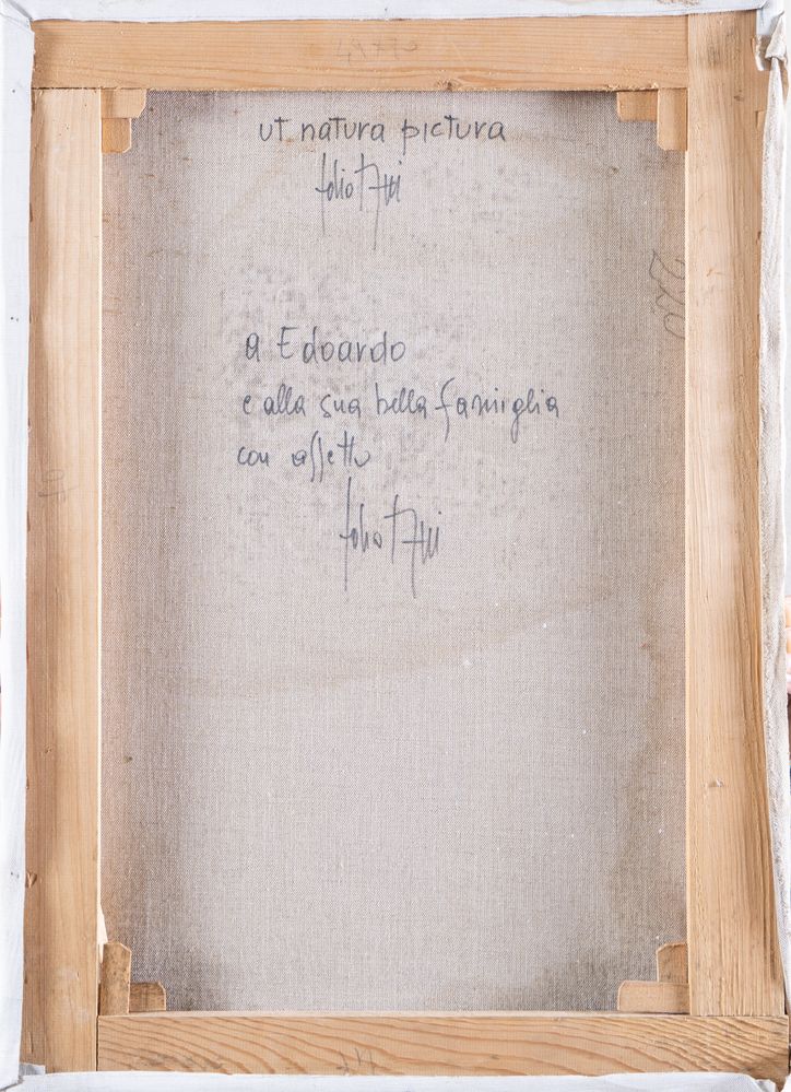 FABIO AGUZZI (Milano 1953 – Vidigulfo 2016) "Ut natura pictura". Olio su tela. Cm 70x50. Al retro opera intitolata e firmata Ut natura pictura, Fabio Aguzzi. Al retro reca dedica a firma Fabio Aguzzi.