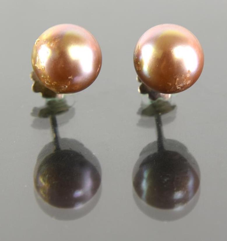 orecchini a vite con perle imitazione color rosato di mm 10,8 circa ciascuna