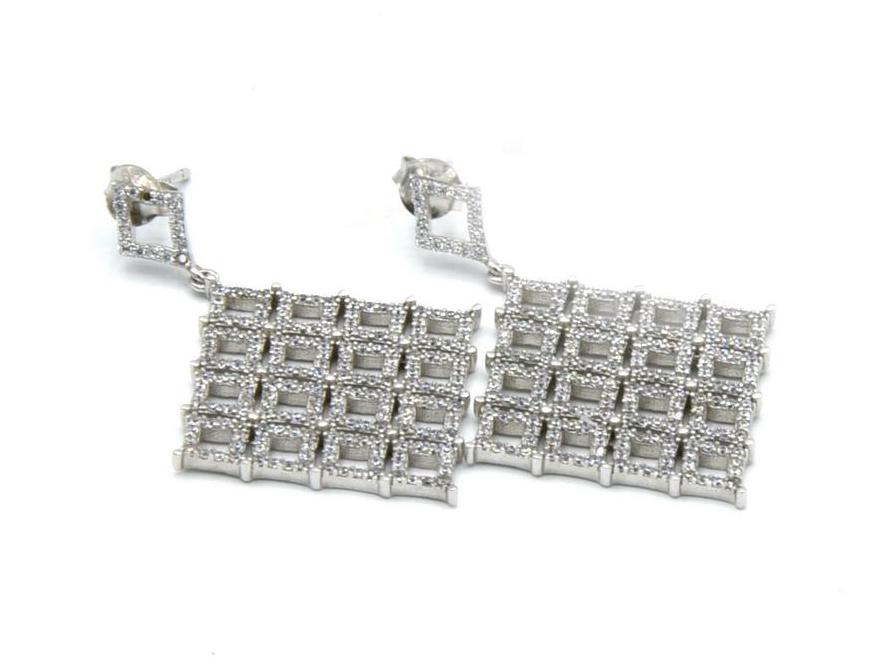 ORECCHINI PENDENTI A MOTIVO GEOMETRICO in argento 925 decorato con pave' di...
