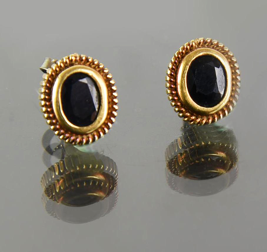 Lotto 40 | COPPIA DI ORECCHINI OVALI CON PICCOLO GRANATO AL CENTRO in metallo dorato,...
