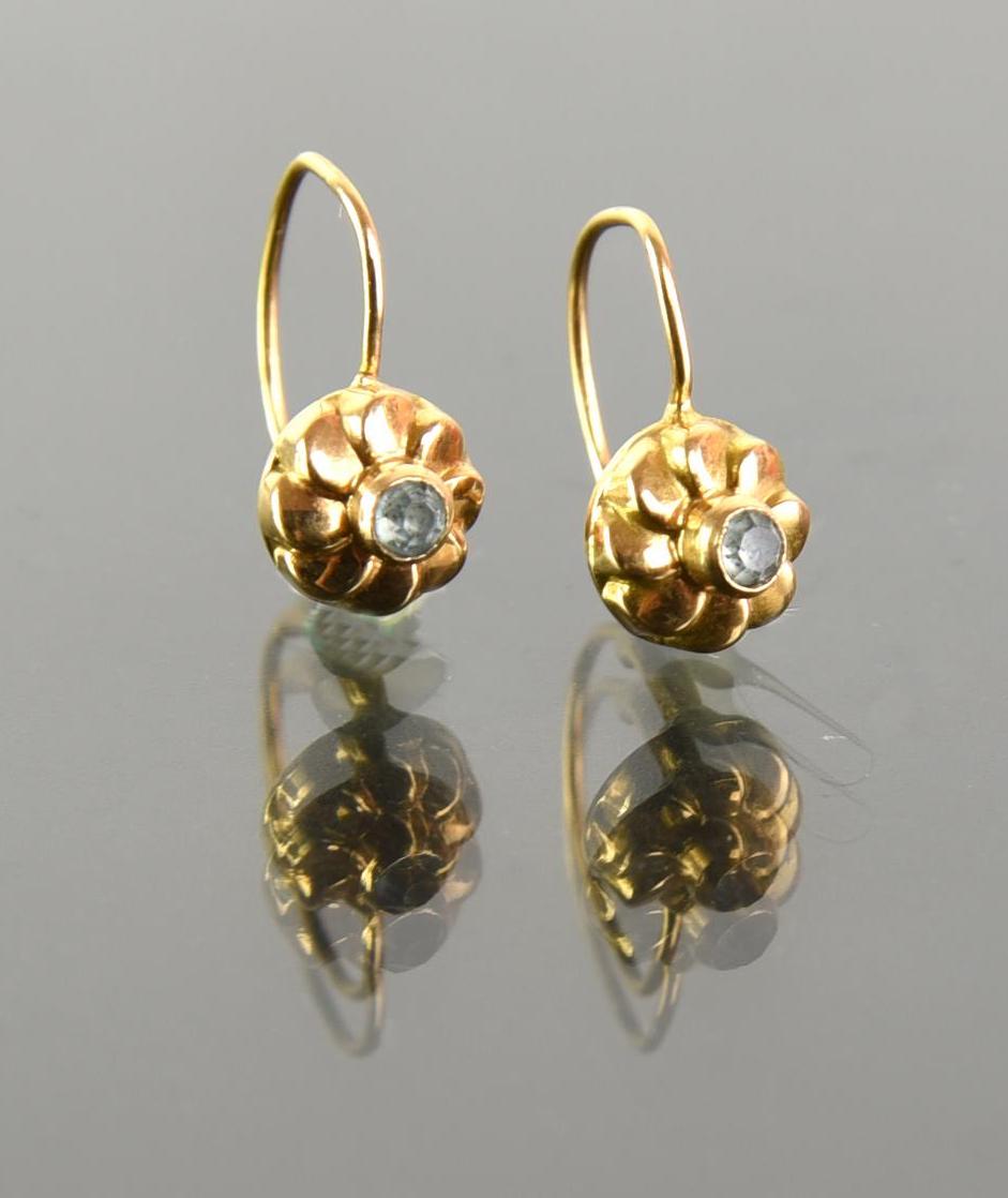 in oro giallo 18kt, lunghezza cm 1,5 ciascuno, peso complessivo gr. 1,40