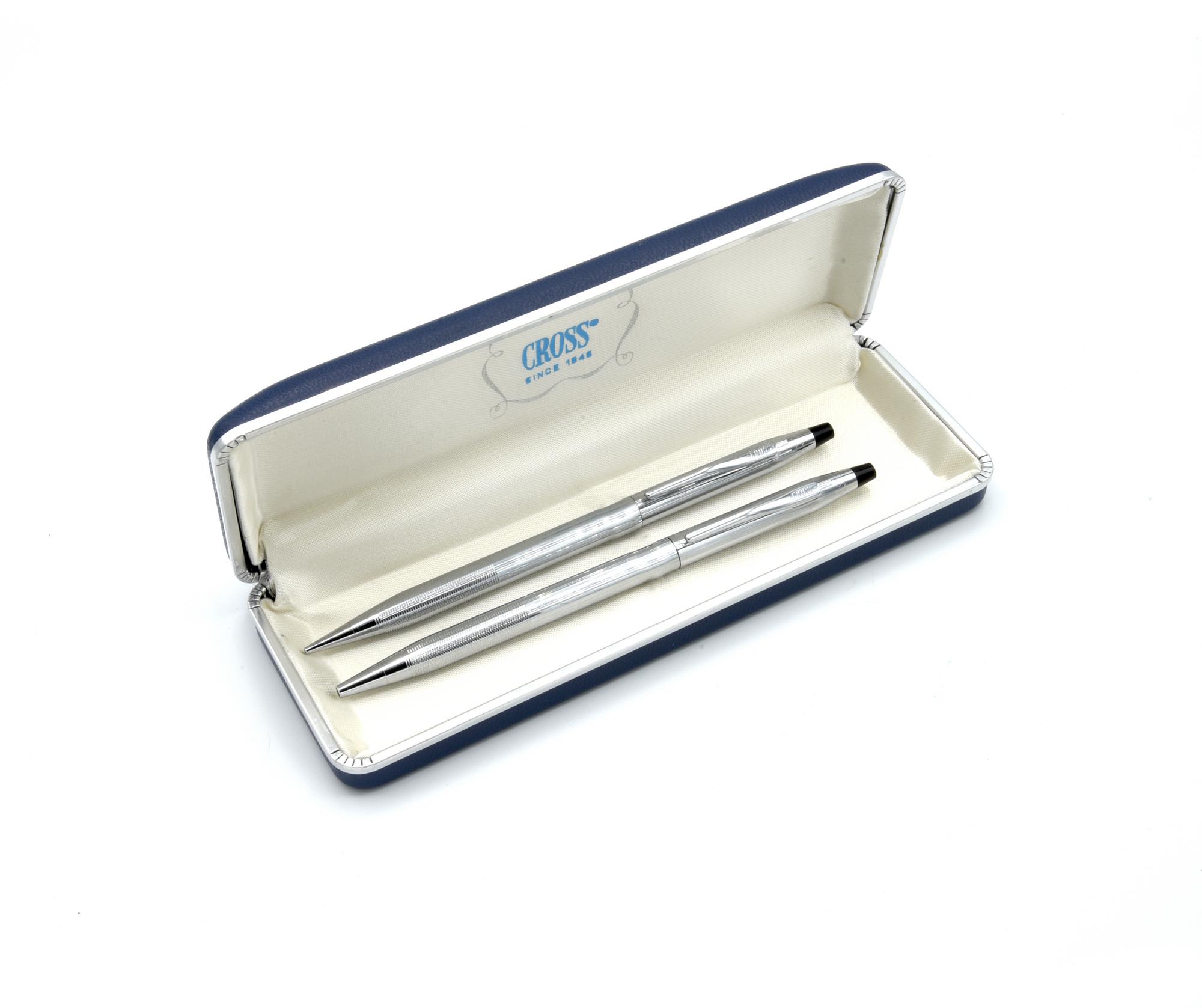 COPPIA DI PENNE CROSS una penna a sfera e un portamine in metallo argentato...