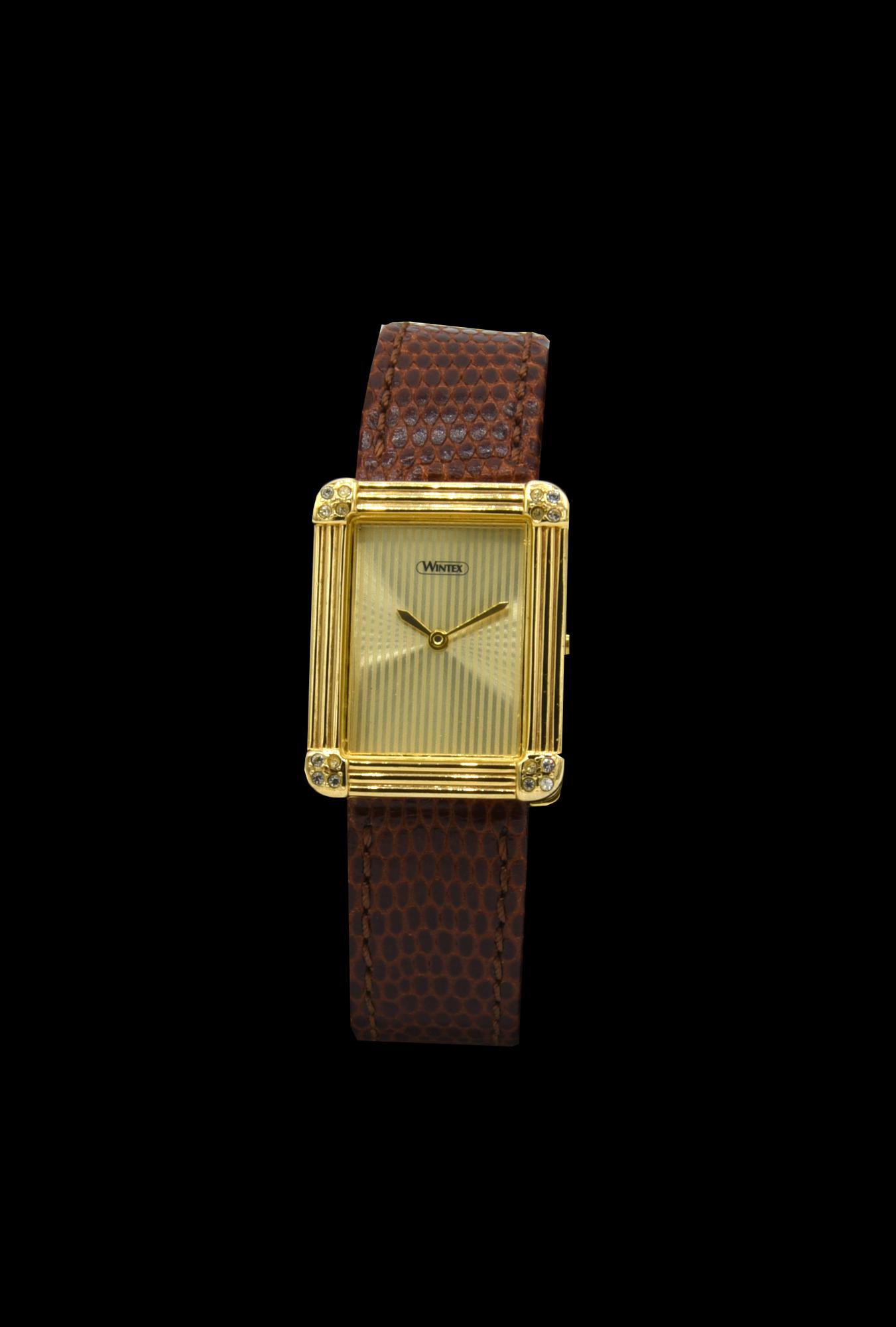 WINTEX CASSA: rettangolare in acciaio dorato. Lunetta dorata con 4 pietre a...