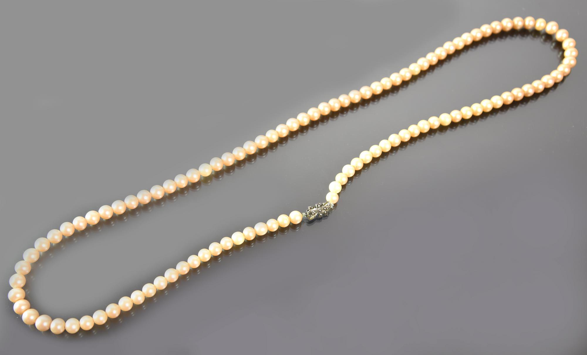 COLLANA DI PERLE E CHIUSURA A FIOCCO IN ARGENTO