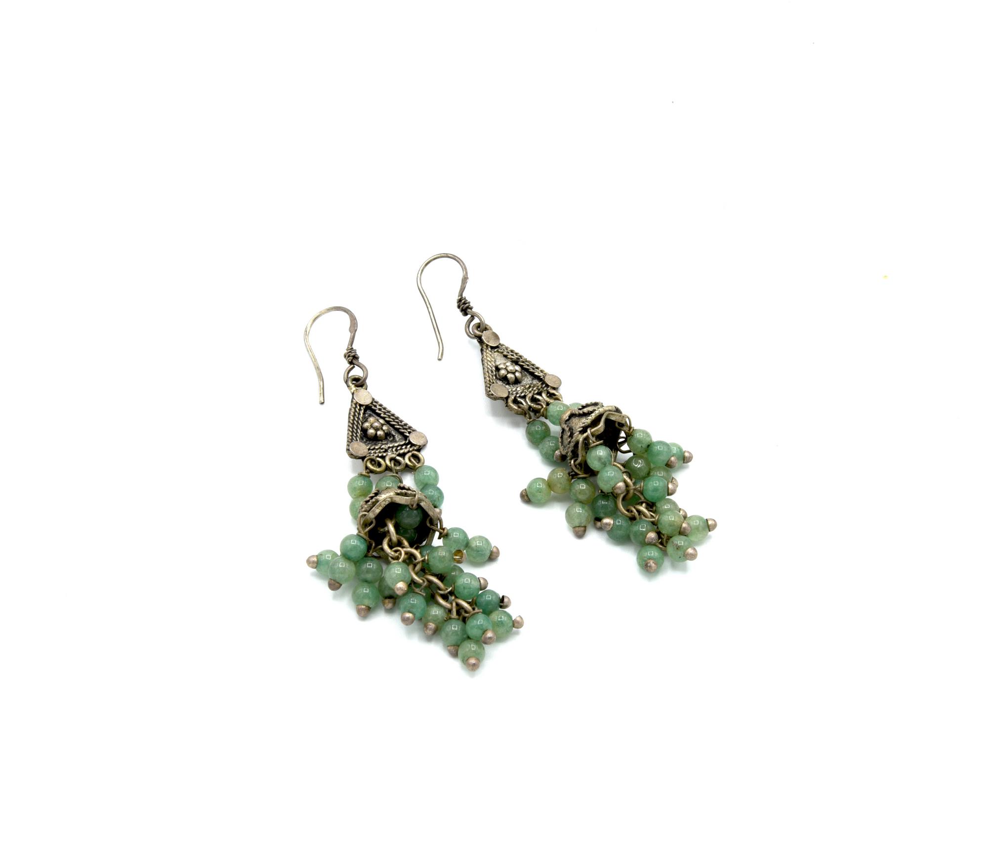 Lotto 247 | ORECCHINI PENDENTI CON FILI DI PICCOLE PIETRE DURE SUI TONI DEL VERDE...