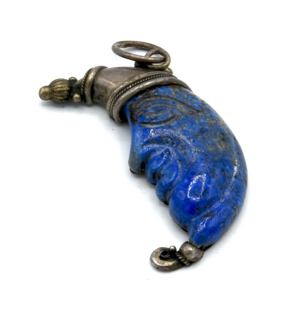 Lotto 288 | CIONDOLO IN LAPISLAZZULO E ARGENTO MODELLATO A LUNA lunghezza cm 4