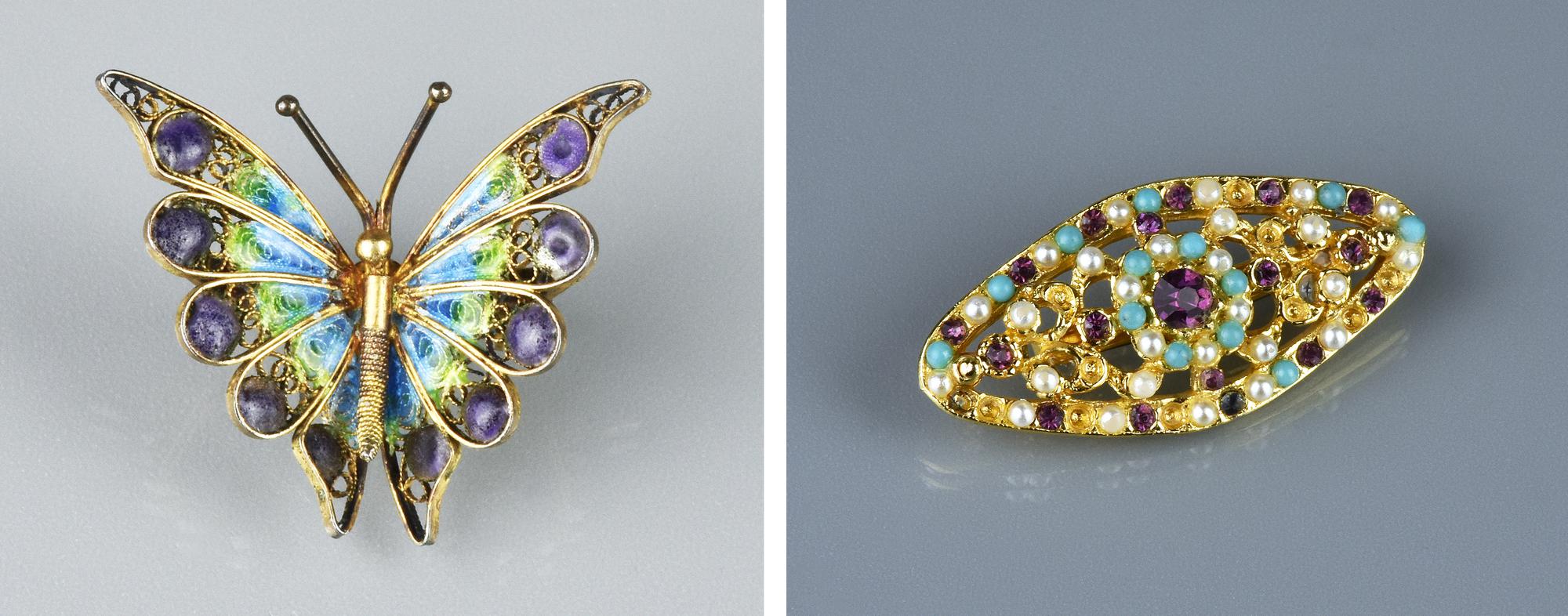 Lotto 294 | LOTTO COMPOSTO DA 2 SPILLE di bigiotteria, una in argento