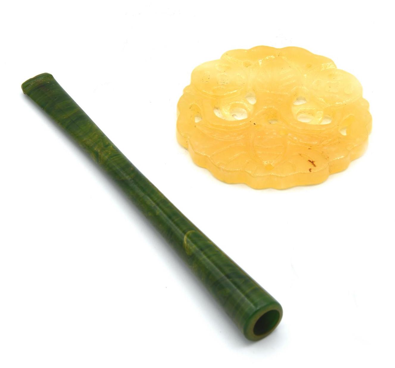 Lotto 297 | LOTTO COMPOSTO DA: - bocchino portasigarette in giadeite - pendente in...
