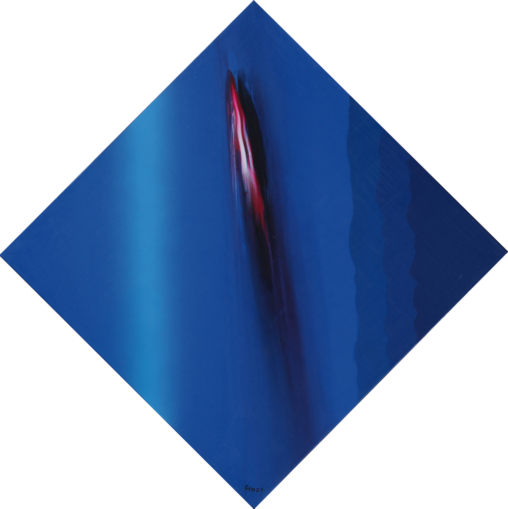 ENNIO FINZI Venezia 1931 Il canto solitario olio su tela romboidale cm. 71x71 (lato cm. 50), firma in basso al centro, titolo e firma al retro, dichiarazione d'autenticità e dedica dell'artista ad personam su foto, certificato di autenticità della Galleria d'Arte Internazionale (Mestre-VE) allegato.