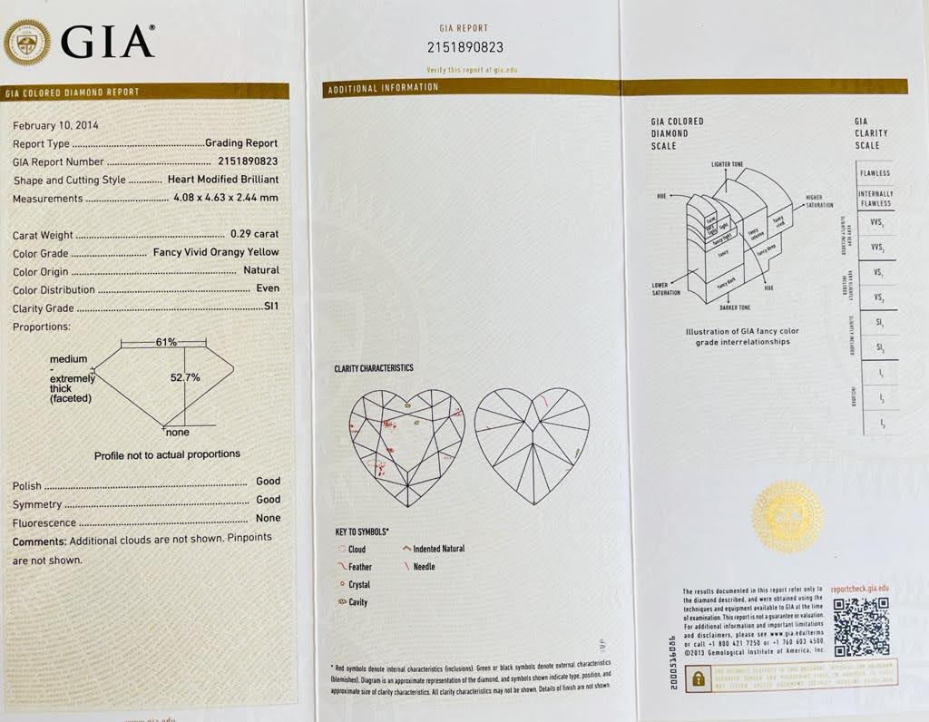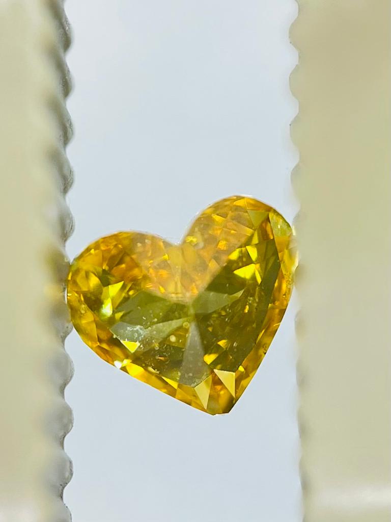 DIAMANTE 0,29 CT FANCY GIALLO ARANCIATO VIVIDO DISTRIBUZIONE COLORE UNIFORME TAGLIO CUORE - CERTIFICATO GIA - 928-3