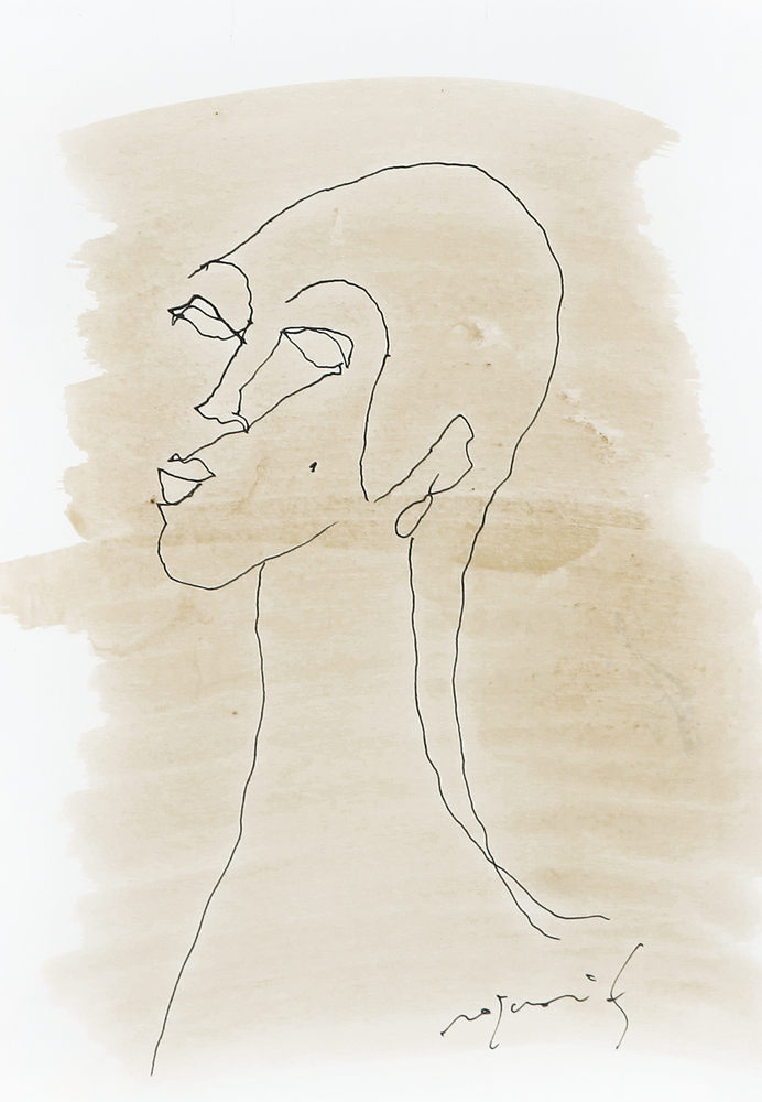 FRANCO ROGNONI Milano 20/09/1913 - Milano 11/03/1999  Figura tecnica mista su carta intelata cm. 30x21, firma in basso a destra, dichiarazione d'autenticità dell'artista su foto.
