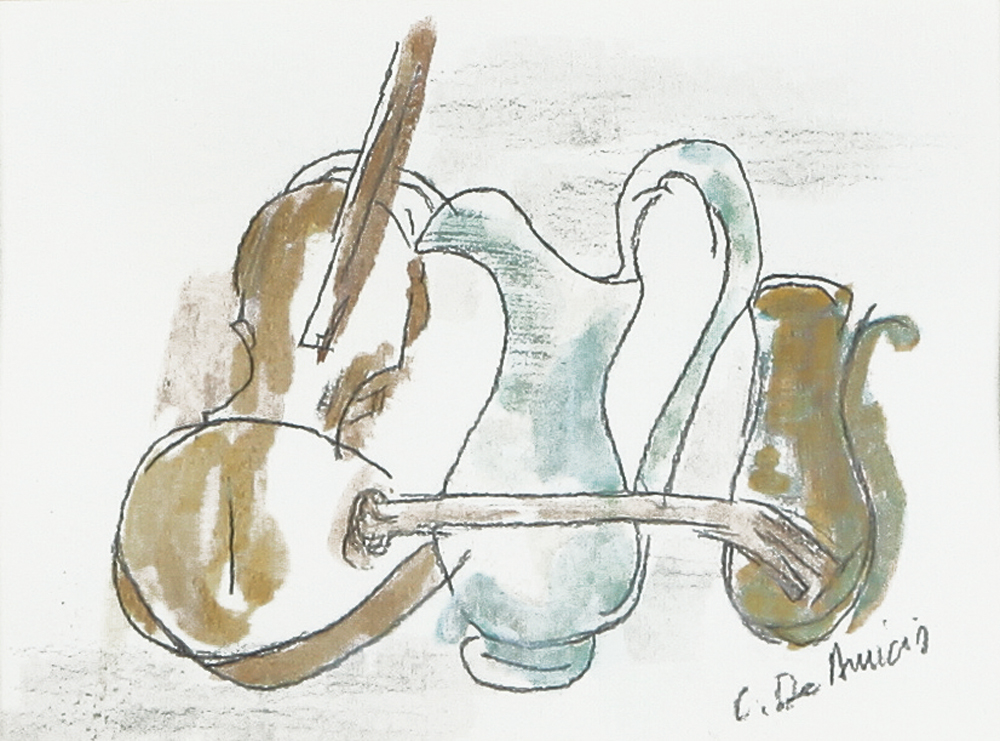 CRISTOFORO DE AMICIS Alessandria 30/06/1902 - Milano 23/04/1987 Natura morta acquarello e matita su carta cm. 14x19, firma in basso a destra, certificato d'autenticità della Associazione Nuovi Artisti (MI) al retro.