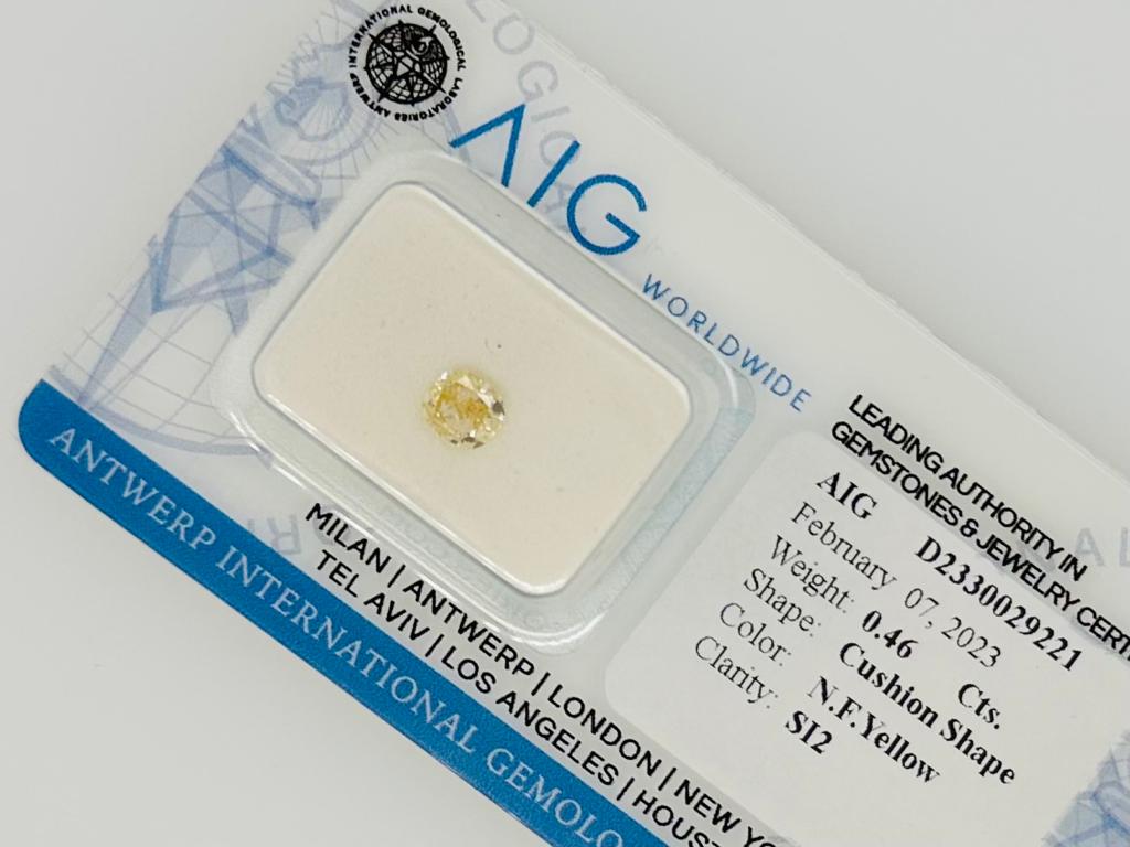 DIAMANTE 0,46 CT NATURAL FANCY GIALLO - PUREZZA SI2 - TAGLIO CUSCINO - CERTIFICATO AIG - UD30121-2