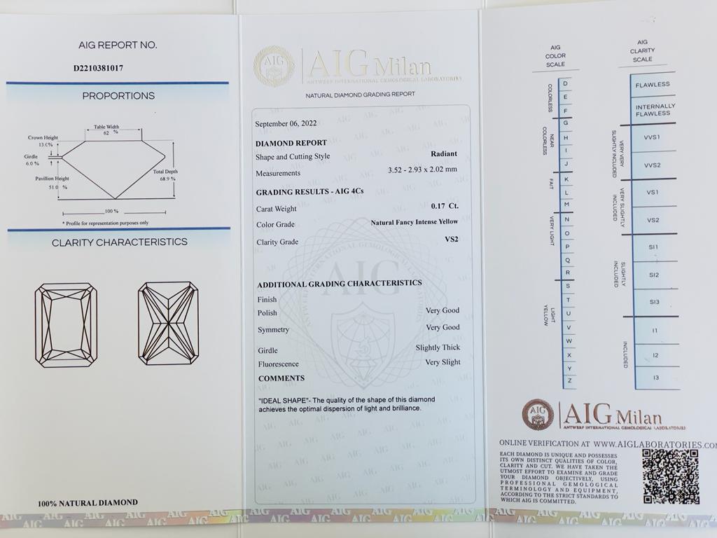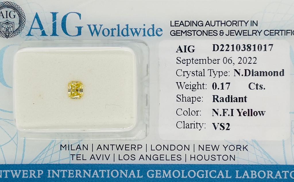 DIAMANTE 0,17 CT FANCY GIALLO INTENSO - VS2 - TAGLIO RADIANTE - CERTIFICATO AIG - F20901-16