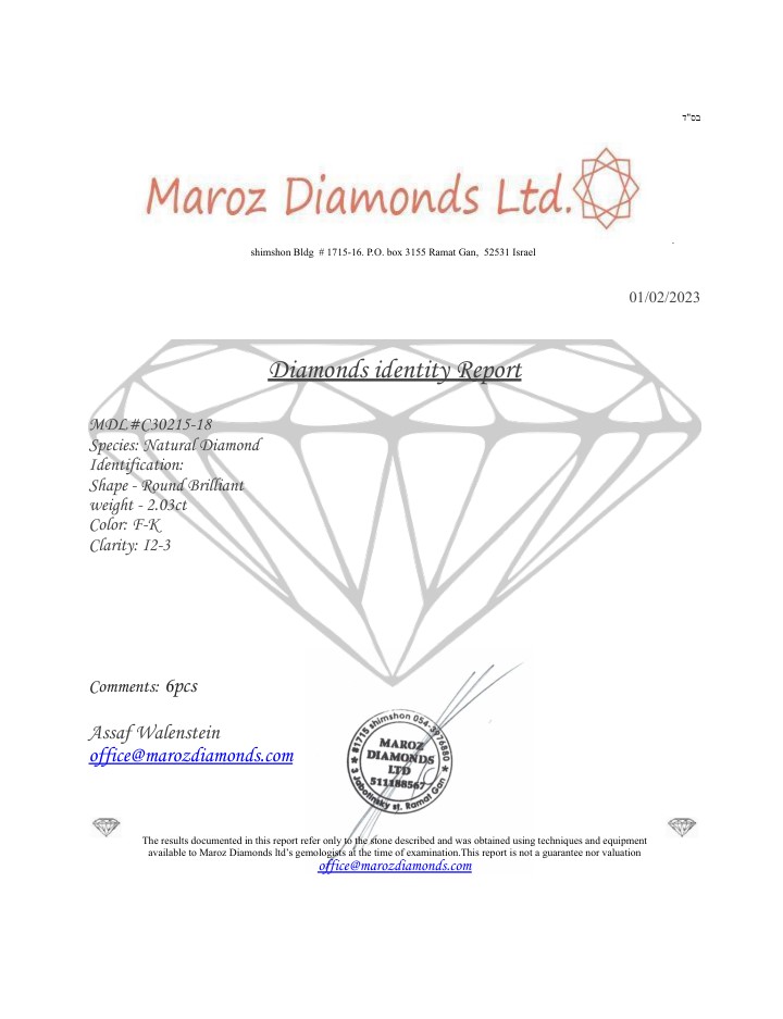 6 DIAMANTI 2,03 CT F-K - I2-3 - TAGLIO BRILLANTE - CERTIFICATO ID - C30215-18