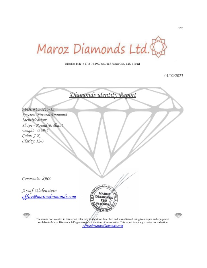 2 DIAMANTI 0,69 CT J-K - I2-3 - TAGLIO BRILLANTE - CERTIFICATO ID - C30215-13