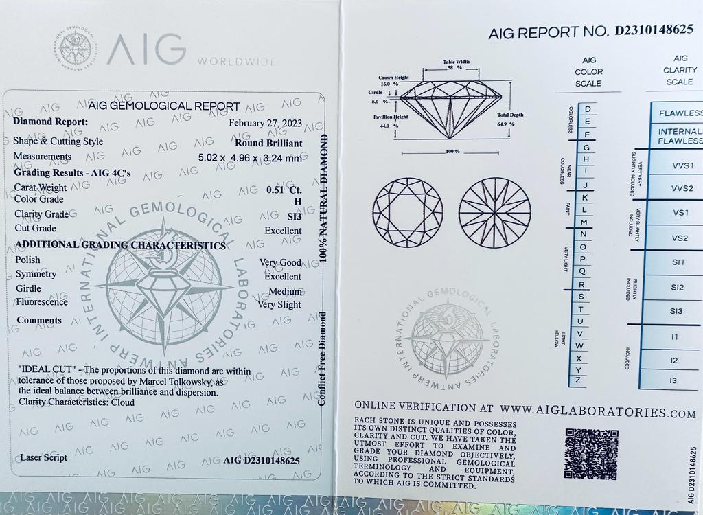 DIAMANTE 0,51 CT H - SI3 - TAGLIO BRILLANTE - CERTIFICATO AIG + INCISO AL LASER - C30220-27