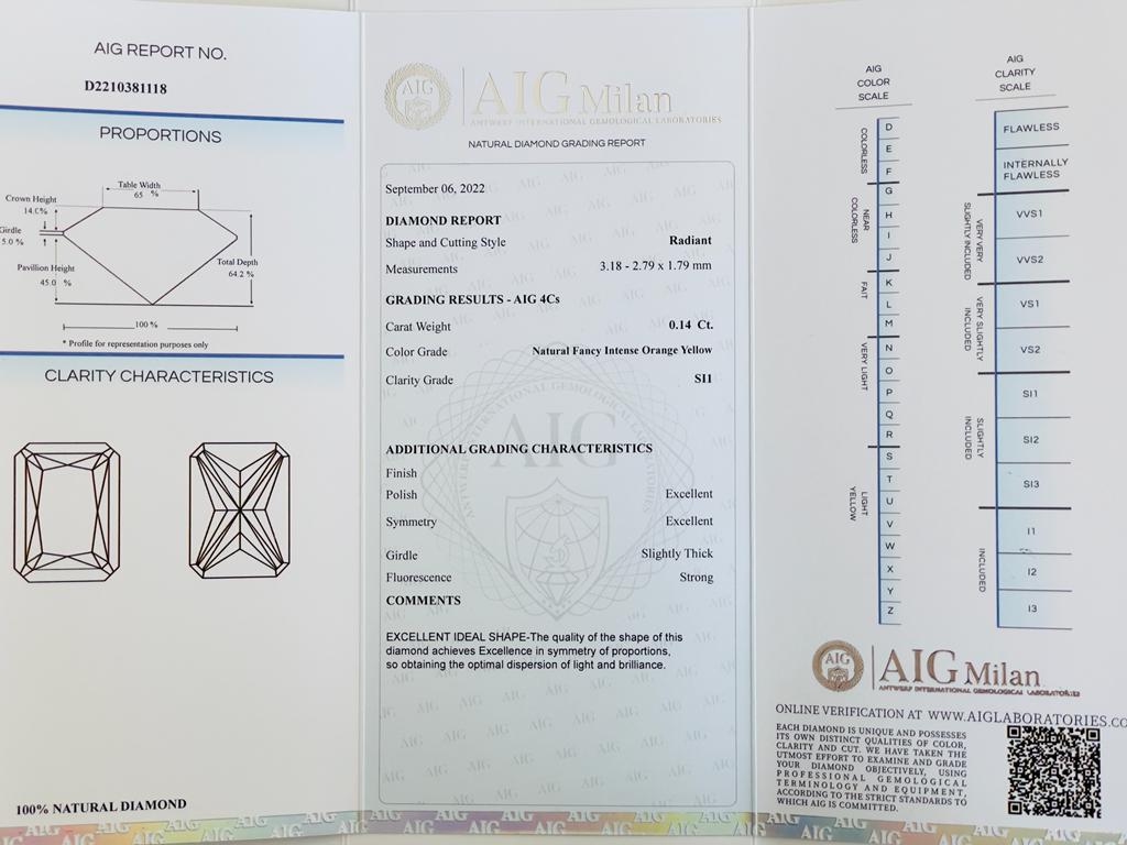 Lotto 174 | DIAMANTE 0,14 CT FANCY GIALLO ARANCIATO INTENSO - SI1 - TAGLIO RADIANTE -...