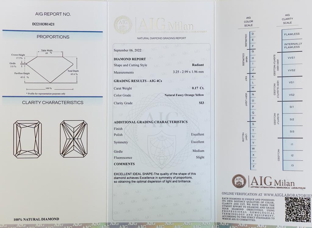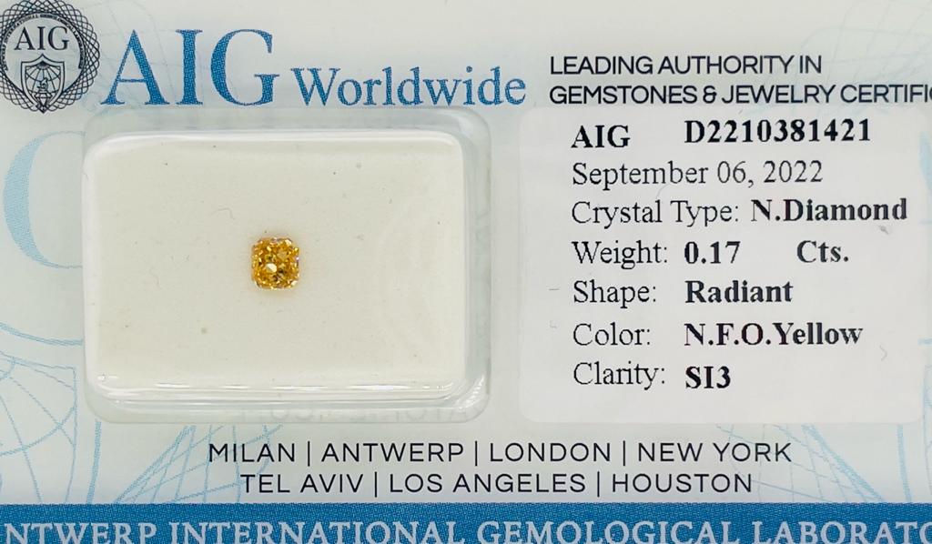 DIAMANTE 0,17 CT FANCY ORANGE GIALLO - SI3 - TAGLIO RADIANTE - CERTIFICATO AIG - F20901-19