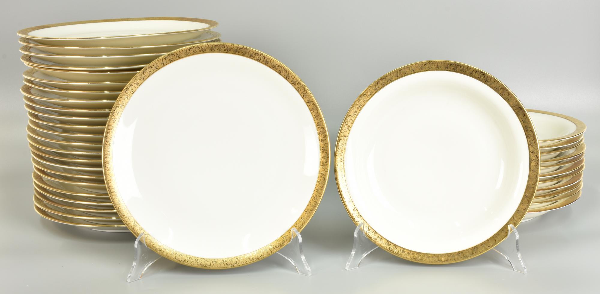 SERVIZIO DI PIATTI ORO ZECCHINO,PORCELLANA E CRISTALLO