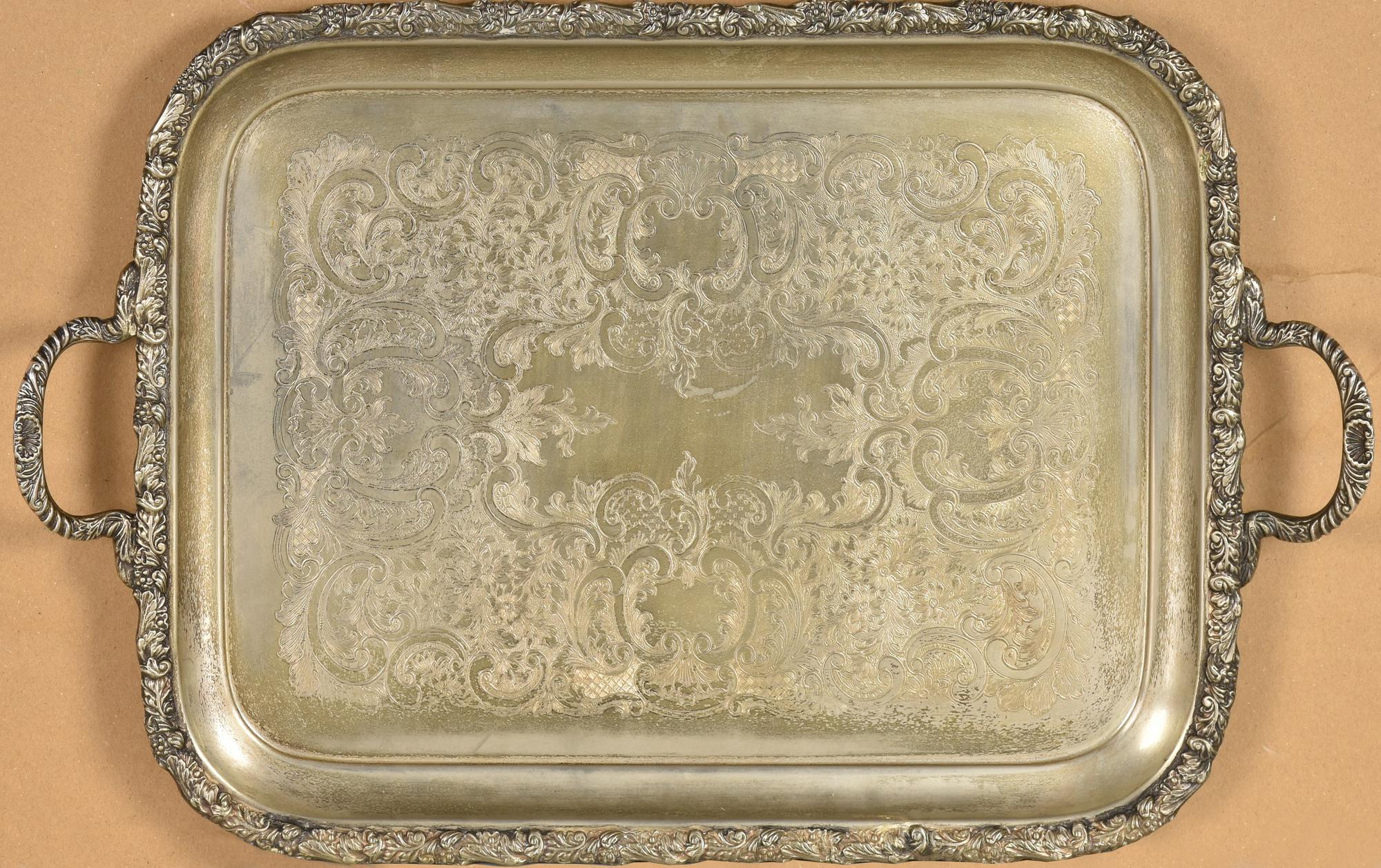 VASSOIO in metallo argentato e cesellato sul fondo: etichetta della Bottega...