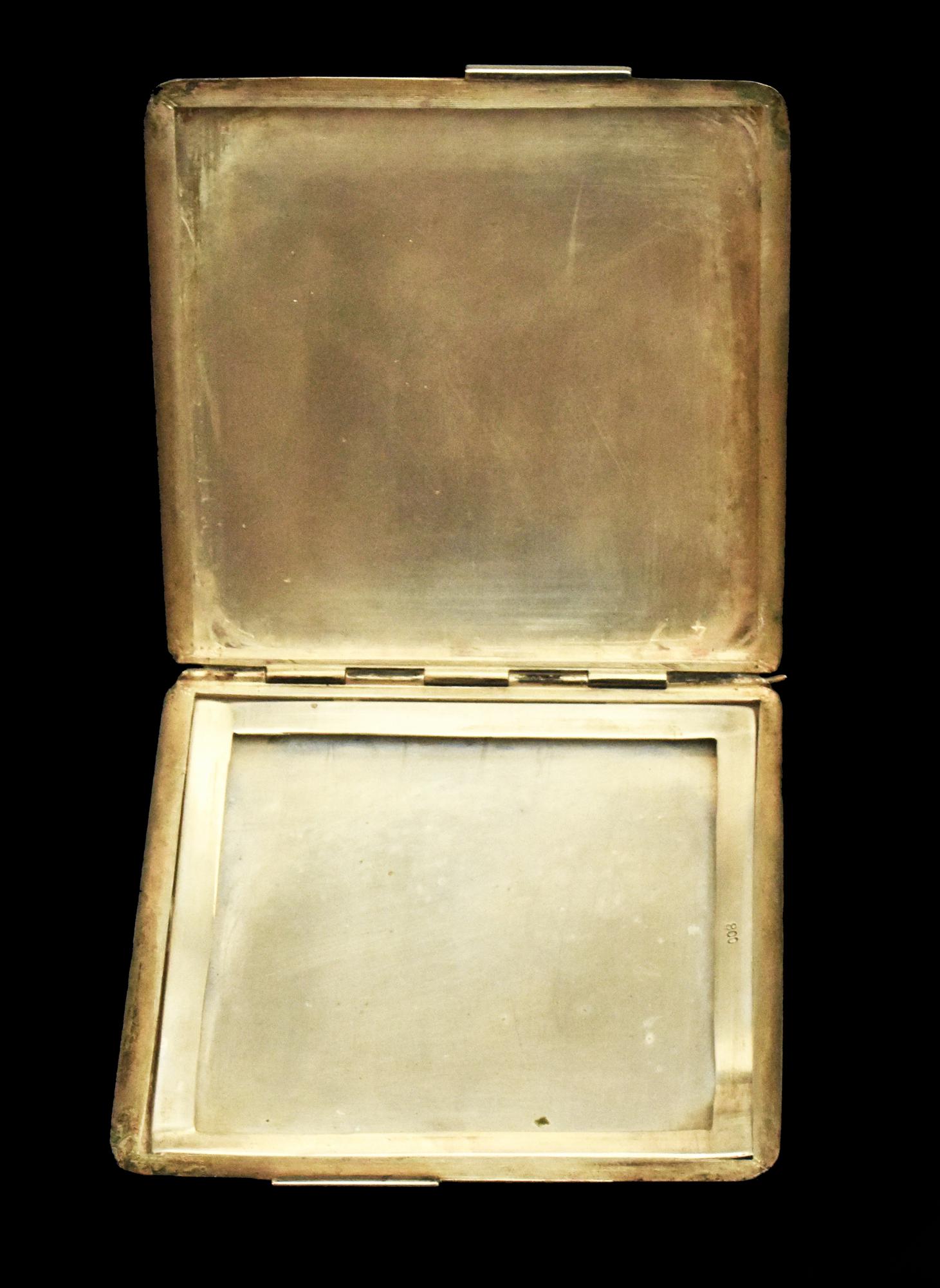 PORTACIPRIA in argento di gusto deco' finemente cesellato cm 7x7x0,5 g 57...